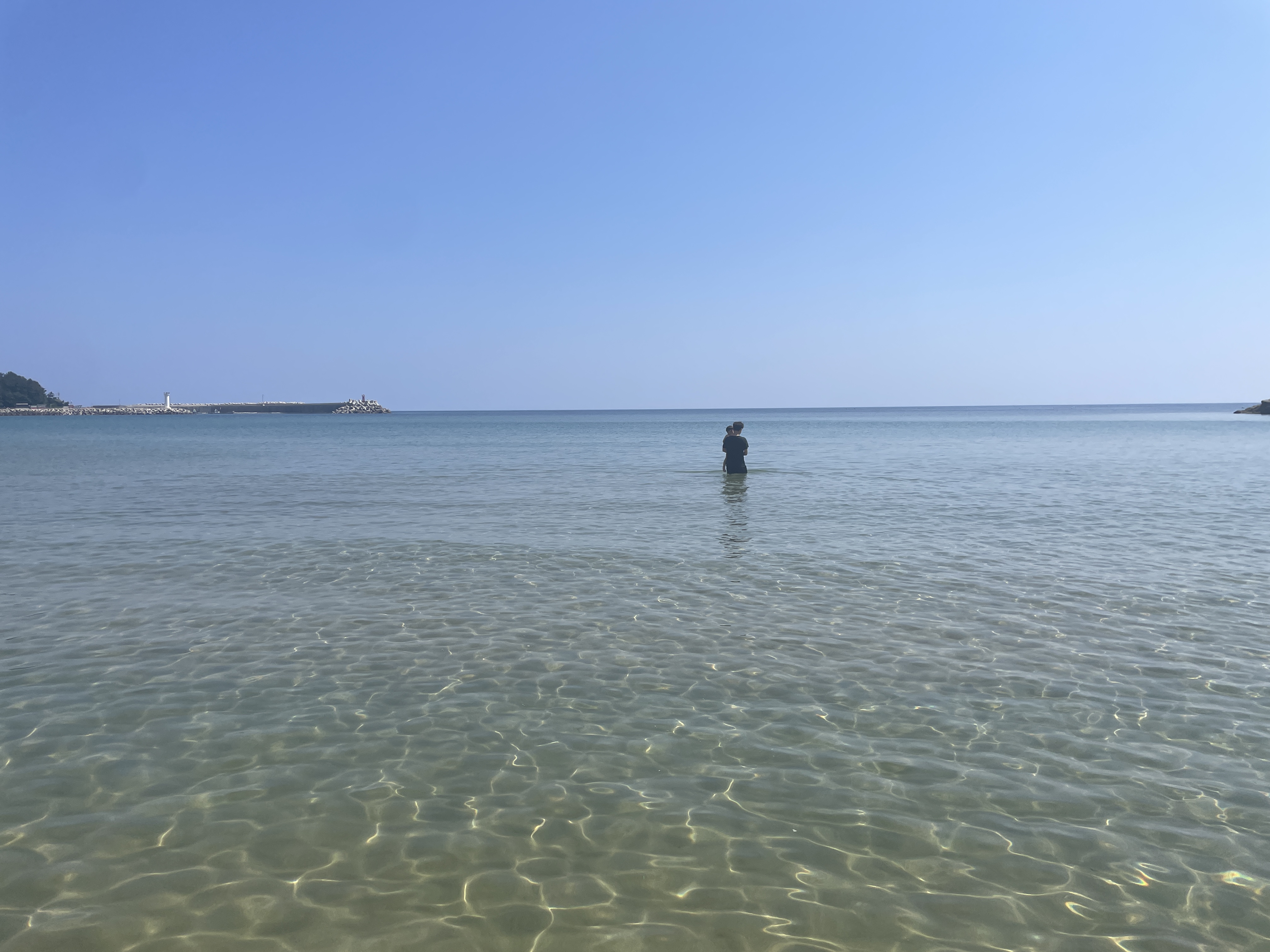 아쉬워서 오전에 다시한번 죽도해변 가서 아기와 함께 물놀이를 하고 왔다.