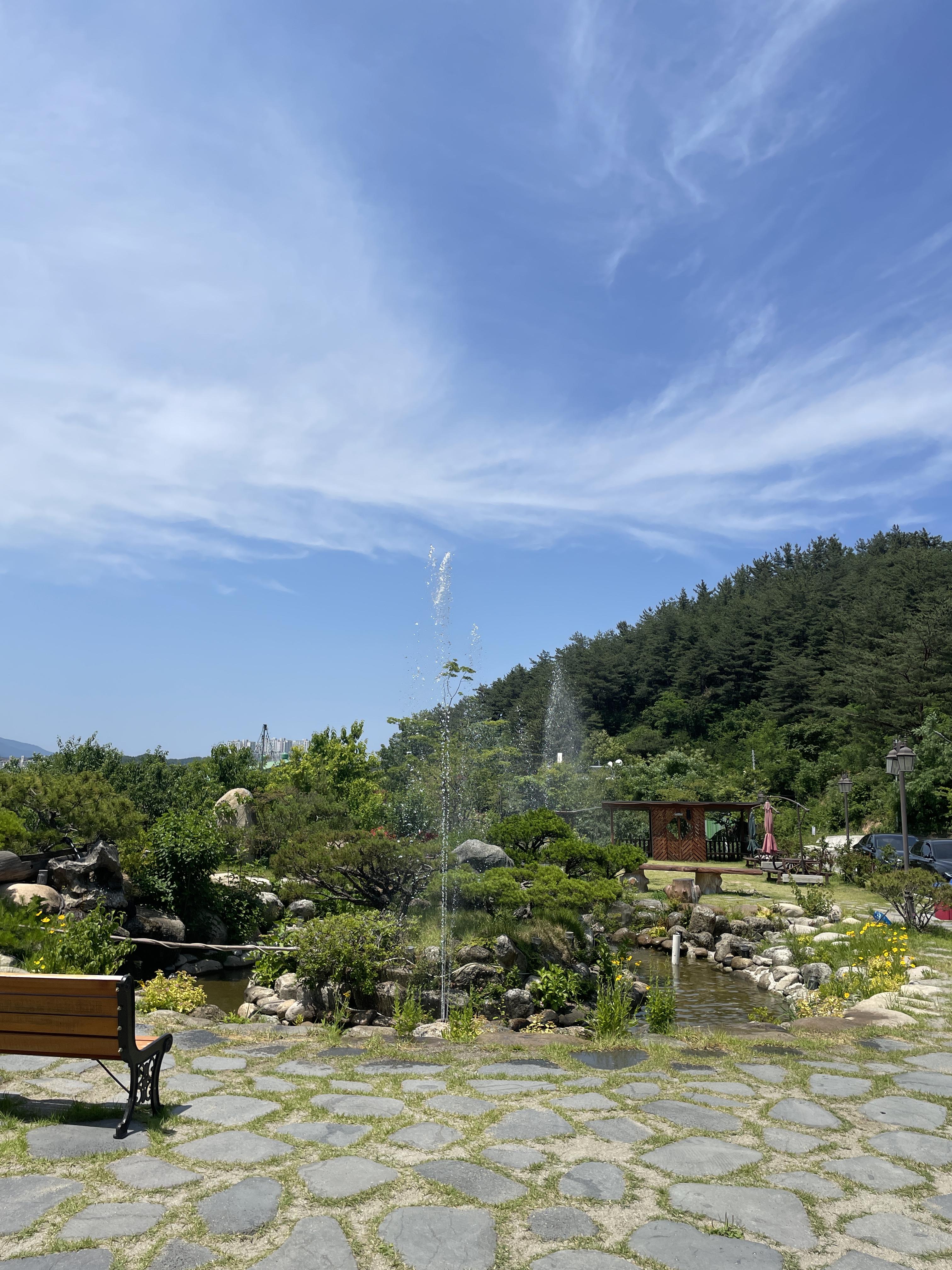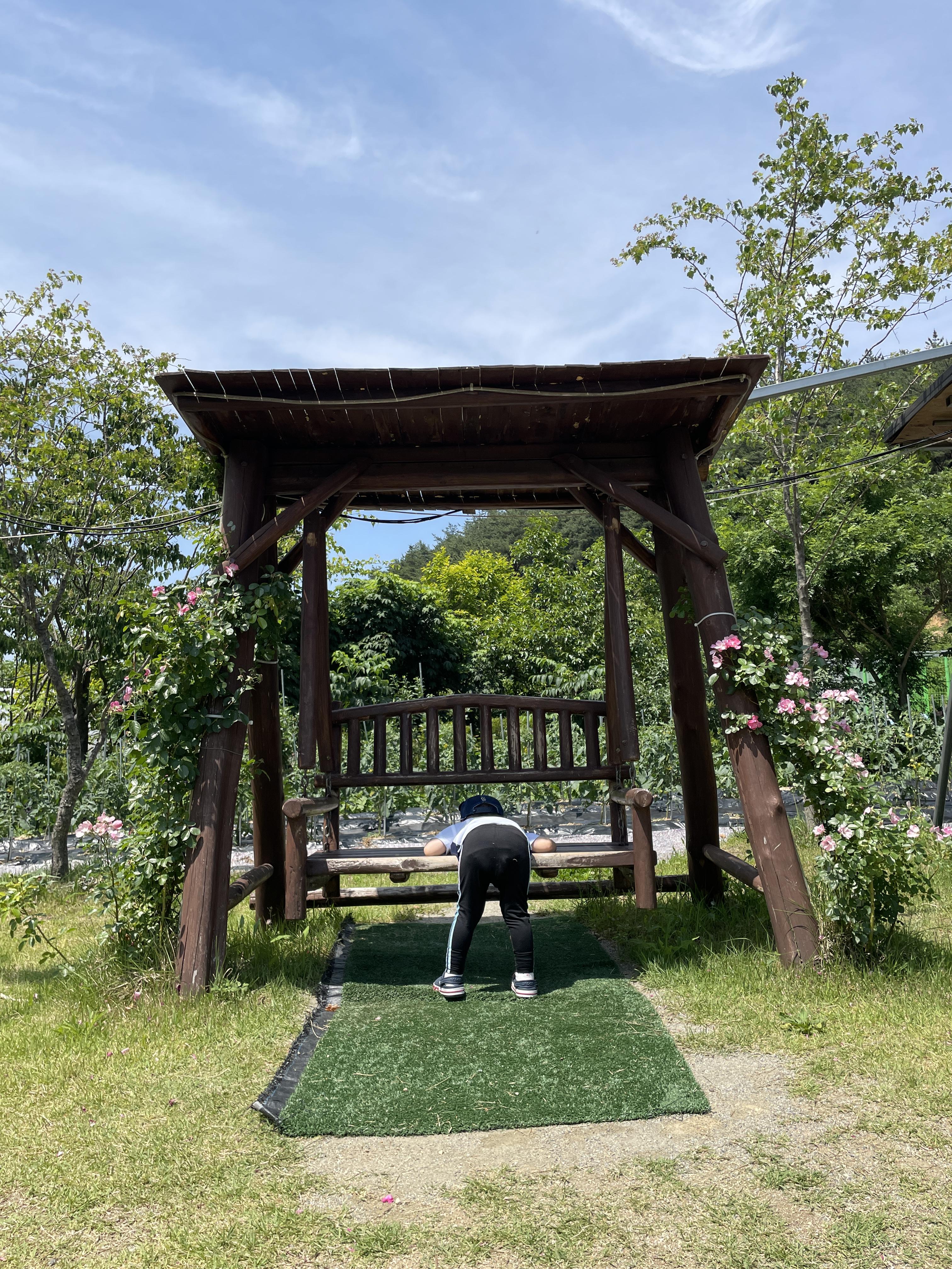 식사를 마치고 작은 분수대가 있는 연못으로 나왔다. 공간이 넓어서 아이가 뛰어놀 공간이 충분했고, 그네가 있어서 다같이 그네도 타고 사진도 찍었다.