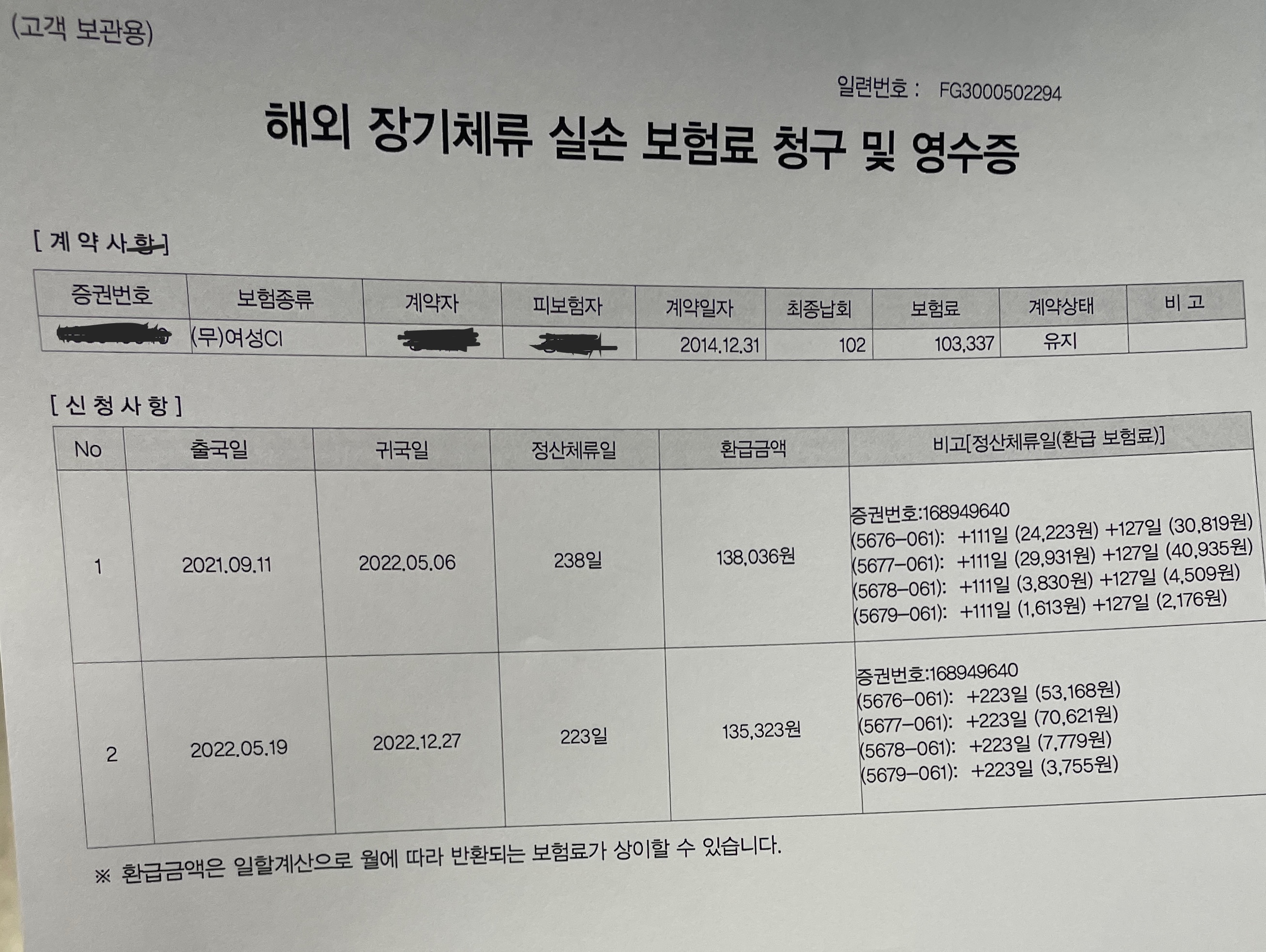 해외에 장기체류할 경우 실손보험금 환급이 가능하다는 것을 모르시는 분들이 많은데, 꼭 방법 알아보시고 환급받으시길 추천합니다.
