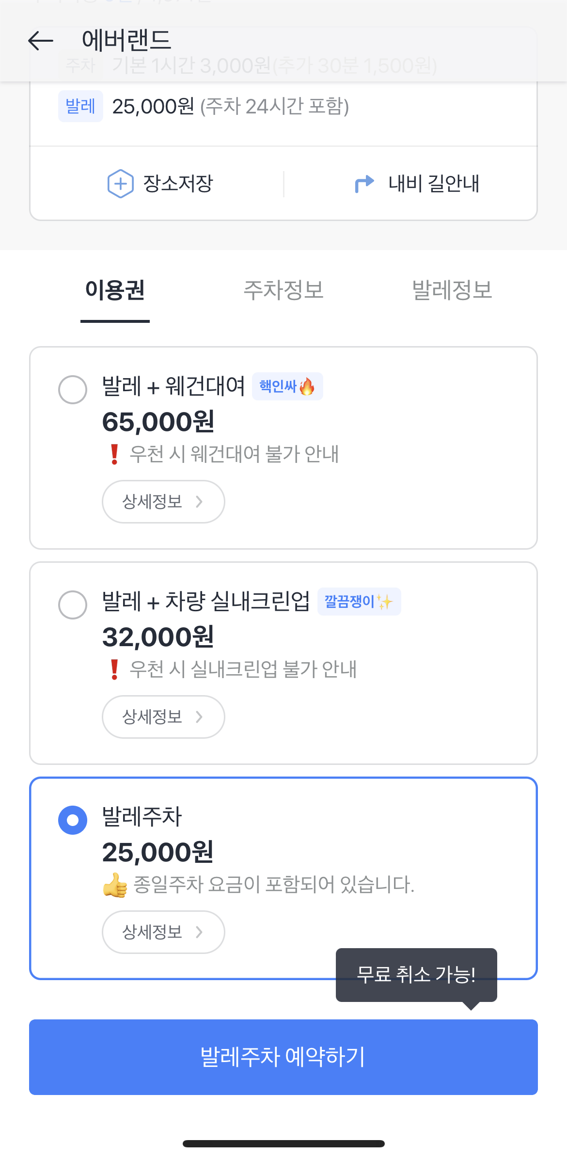 (3) 발레주차 선택 후 예약 완료