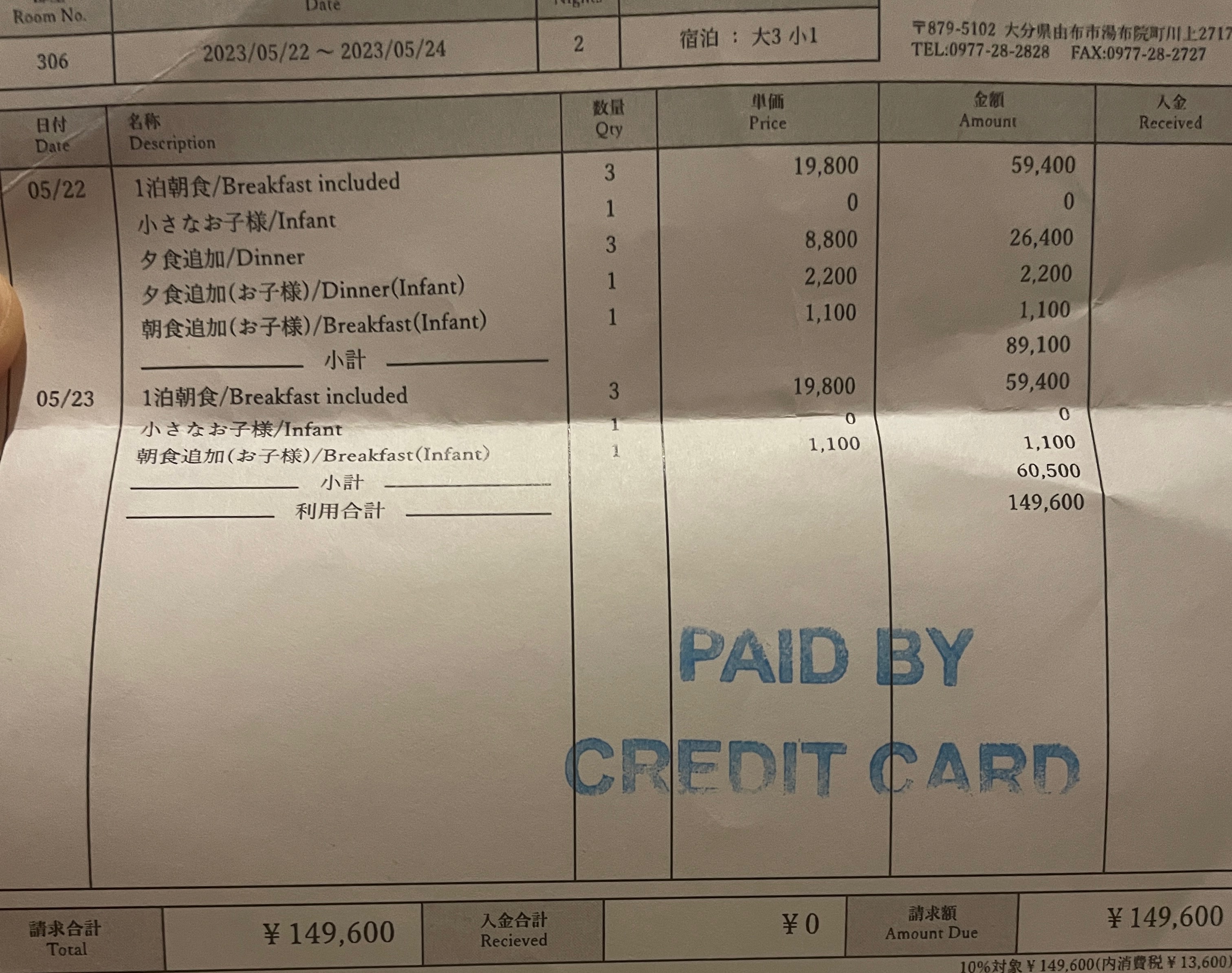 가격: 성인3인 유아1인 2박에 총 149만원(1일 가이세키, 2일 조식 포함)