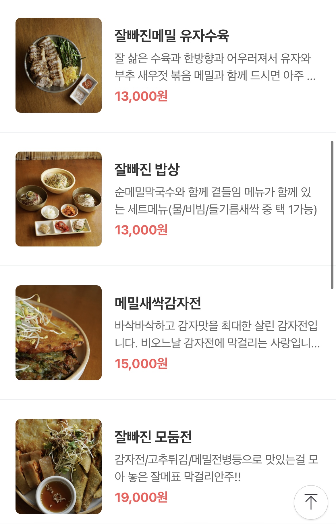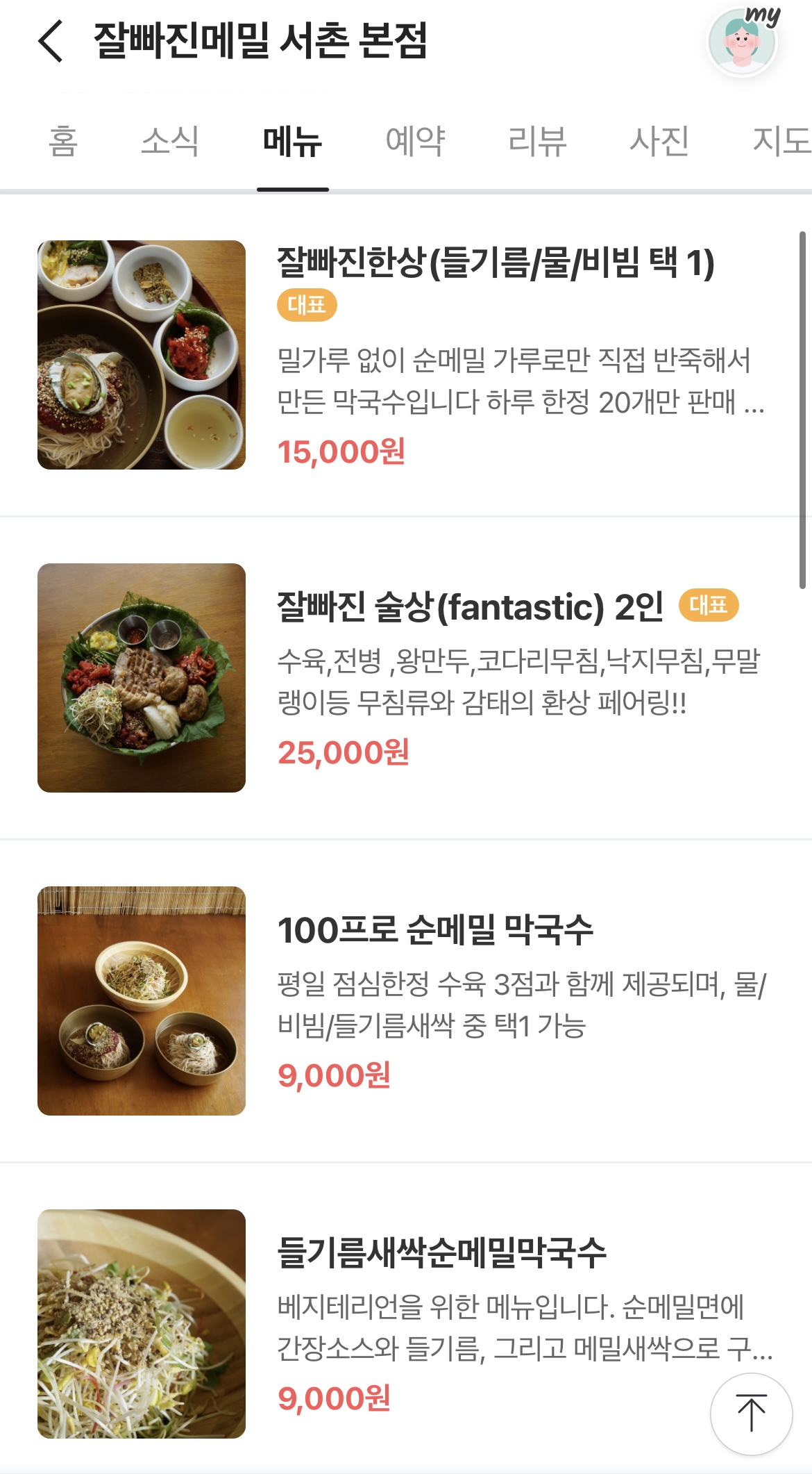 잘빠진 메밀은 메밀과 전, 막걸리 등 많은 메뉴가 있는데요.
