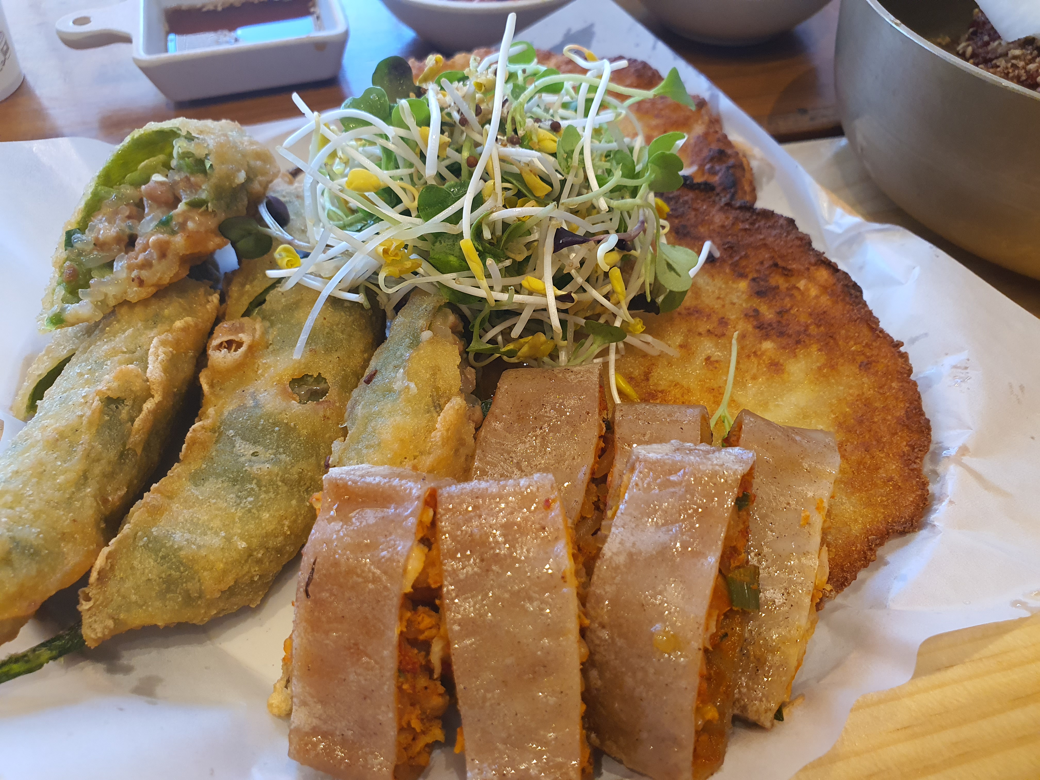 비빔막국수 너무 맛있었고, 모둠전도 감자전/메밀전병/고추튀김 뭐 하나 빠지는 거 없이 맛있더라고요. 역시 서촌 맛집이었어요.