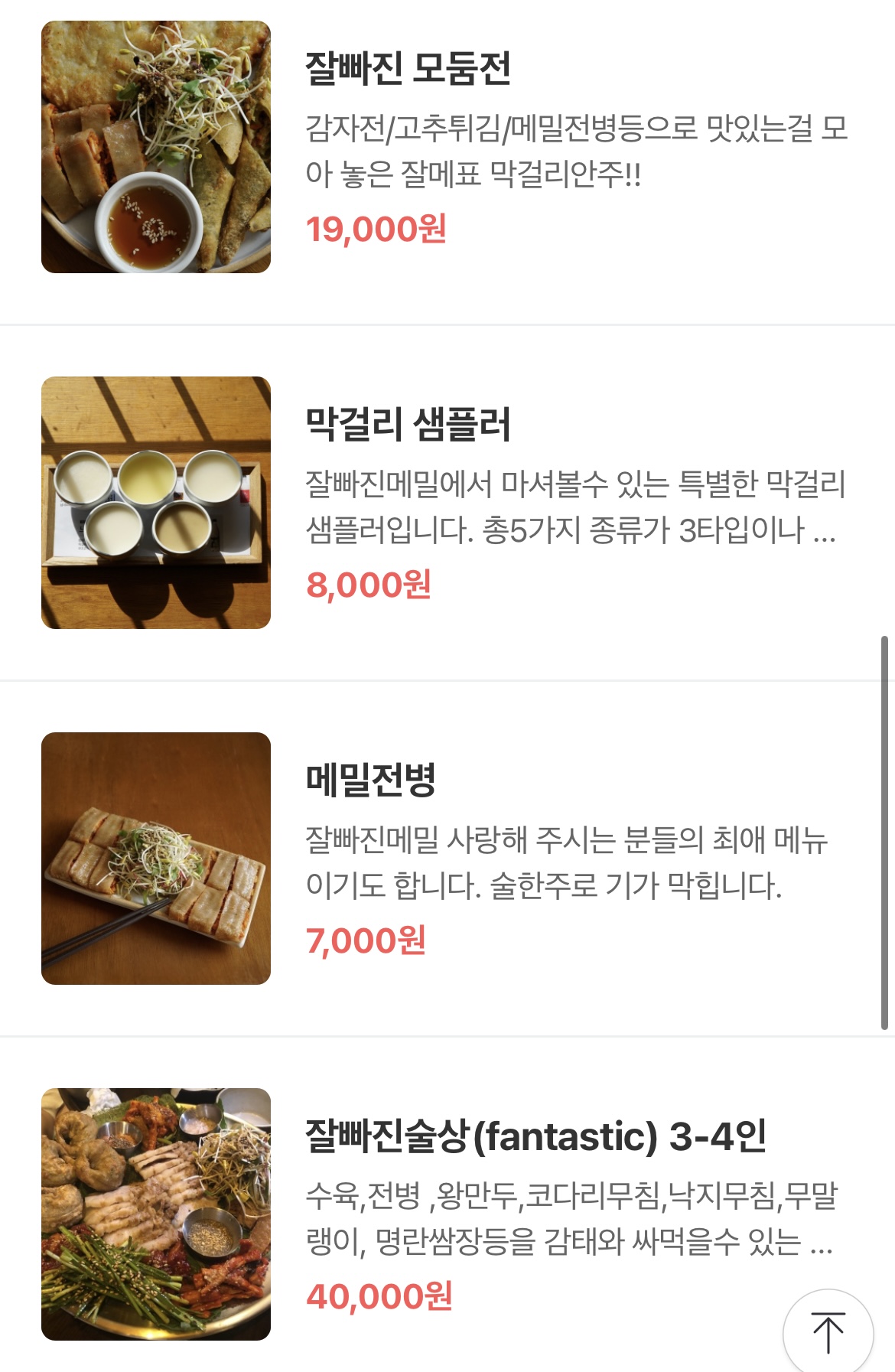 잘빠진 메밀은 메밀과 전, 막걸리 등 많은 메뉴가 있는데요.