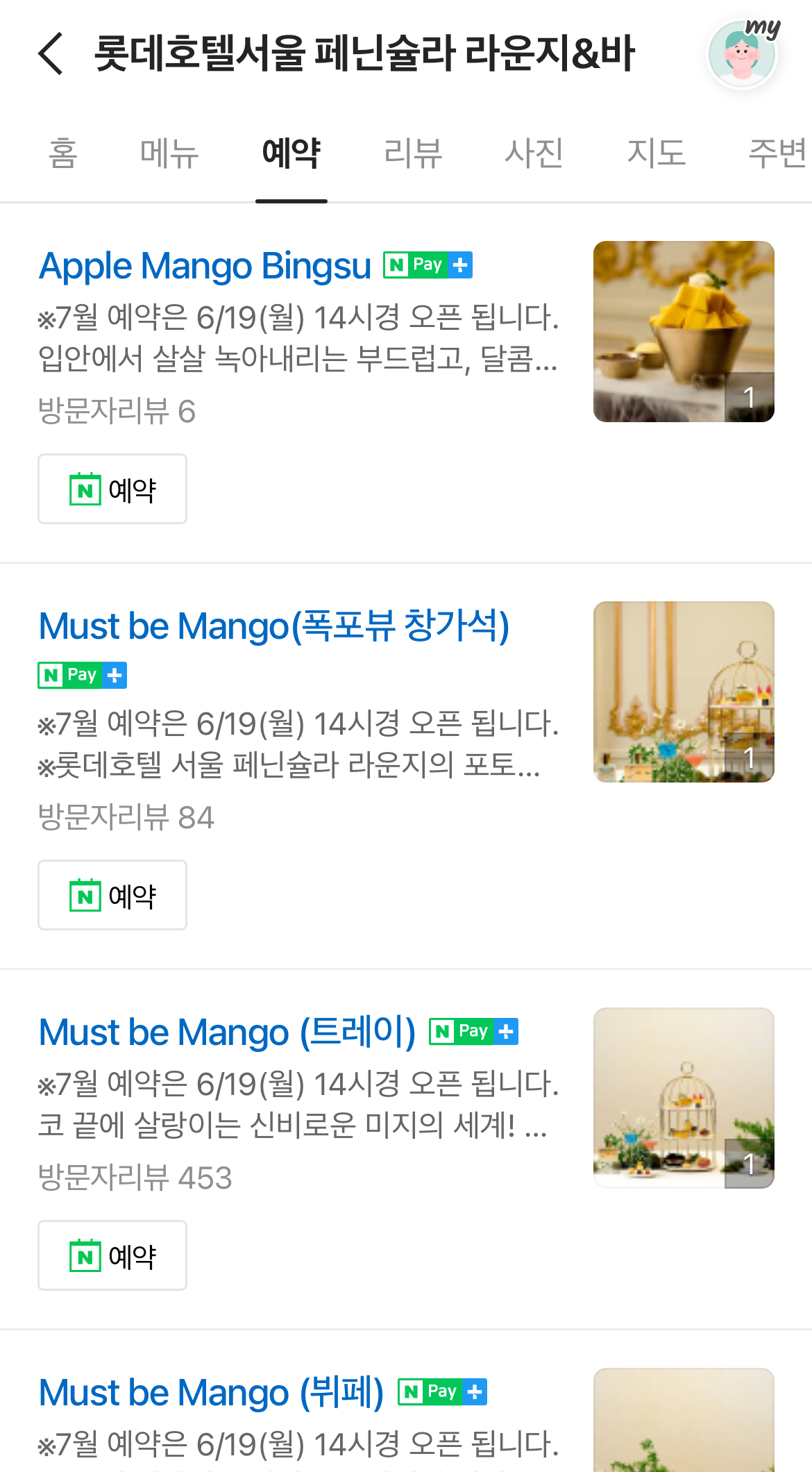 롯데호텔 본점 페닌슐라 망고애프터눈티 세트예요.