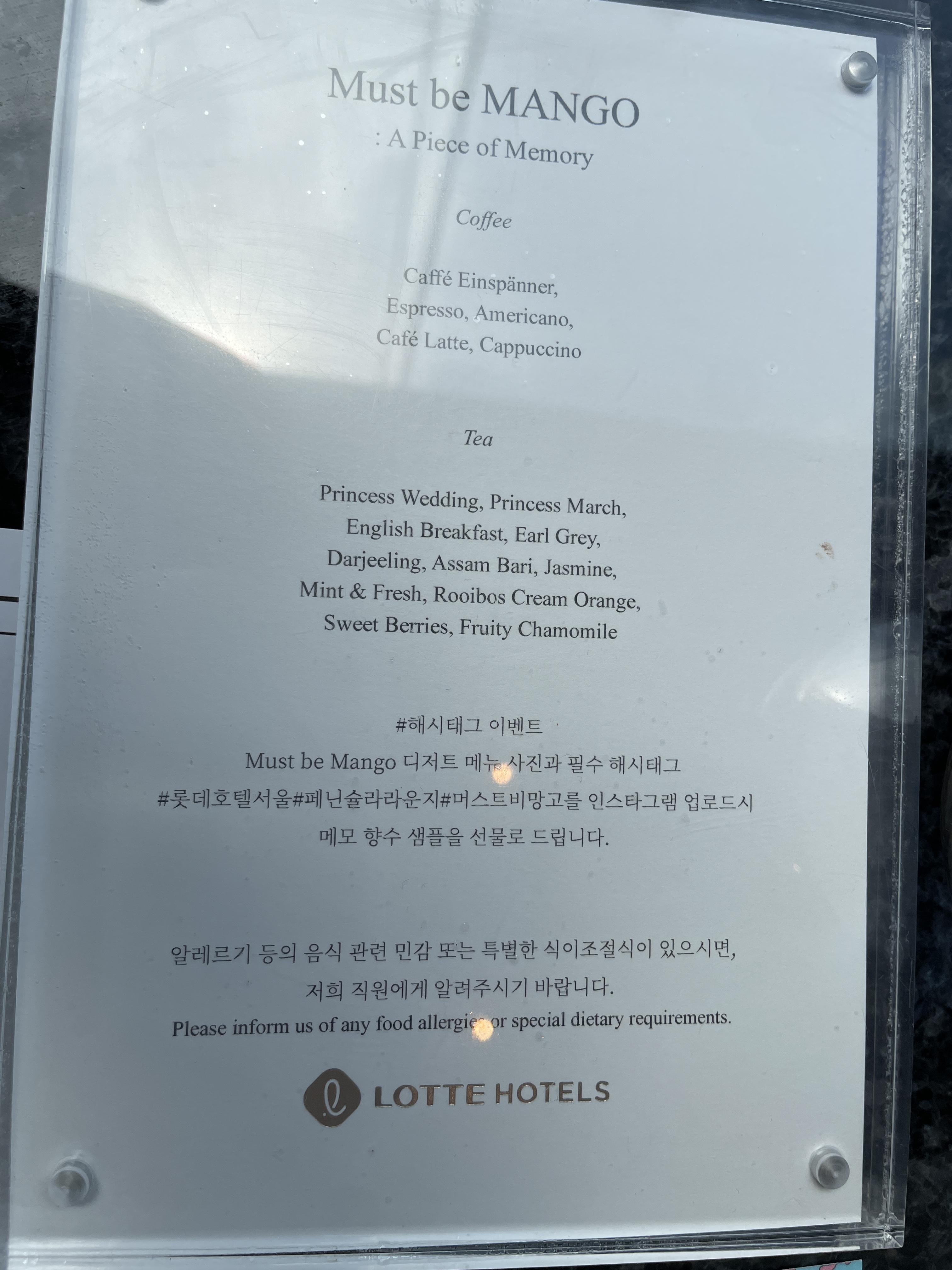 롯데호텔 본점 페닌슐라 커피&티 메뉴