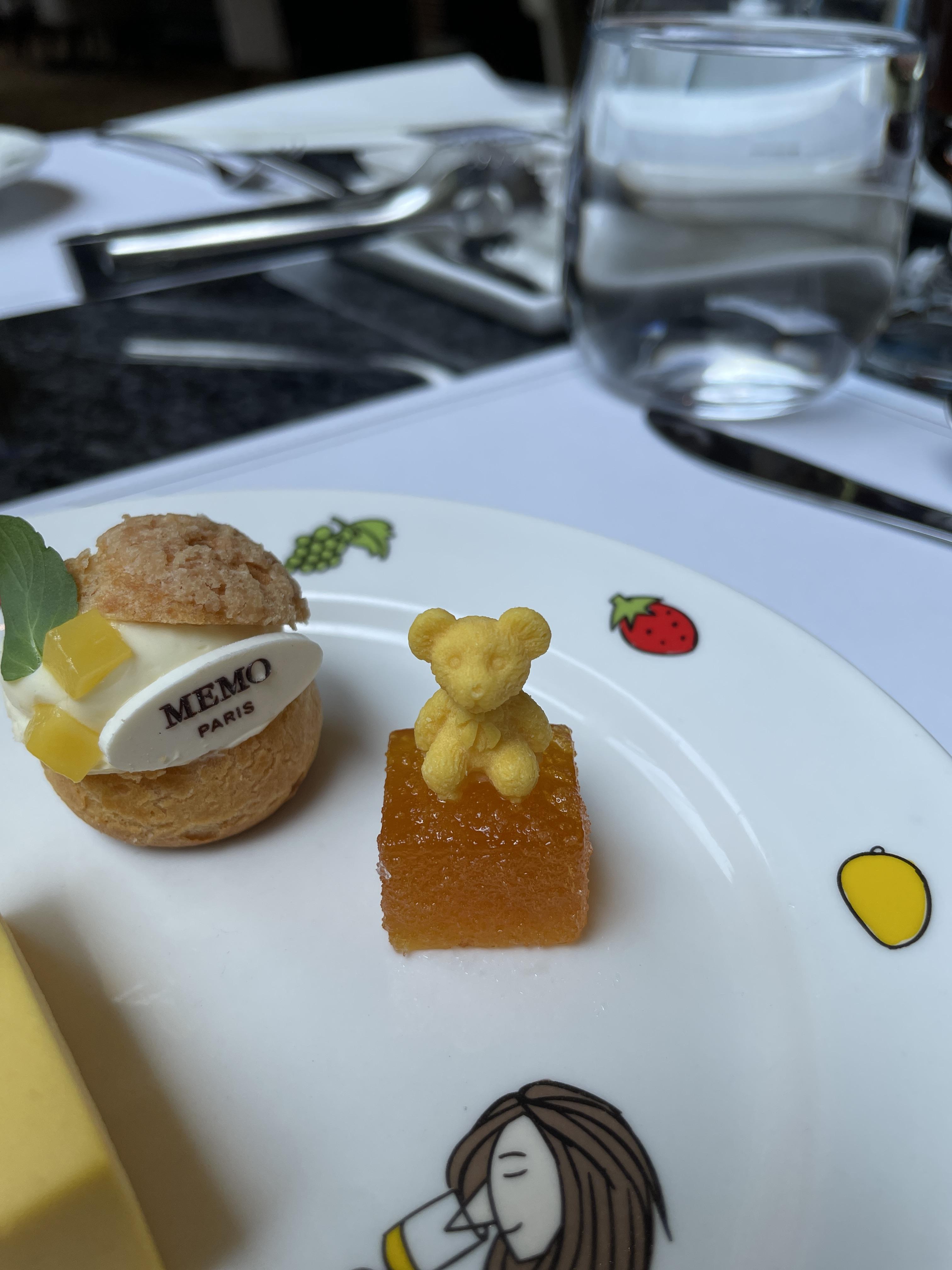 롯데호텔 본점 페닌슐라 웰컴푸드는 망고젤리와 망고푸딩이었어요. 귀여운 곰돌이가 올려져있어 시선강탈 당했답니다.