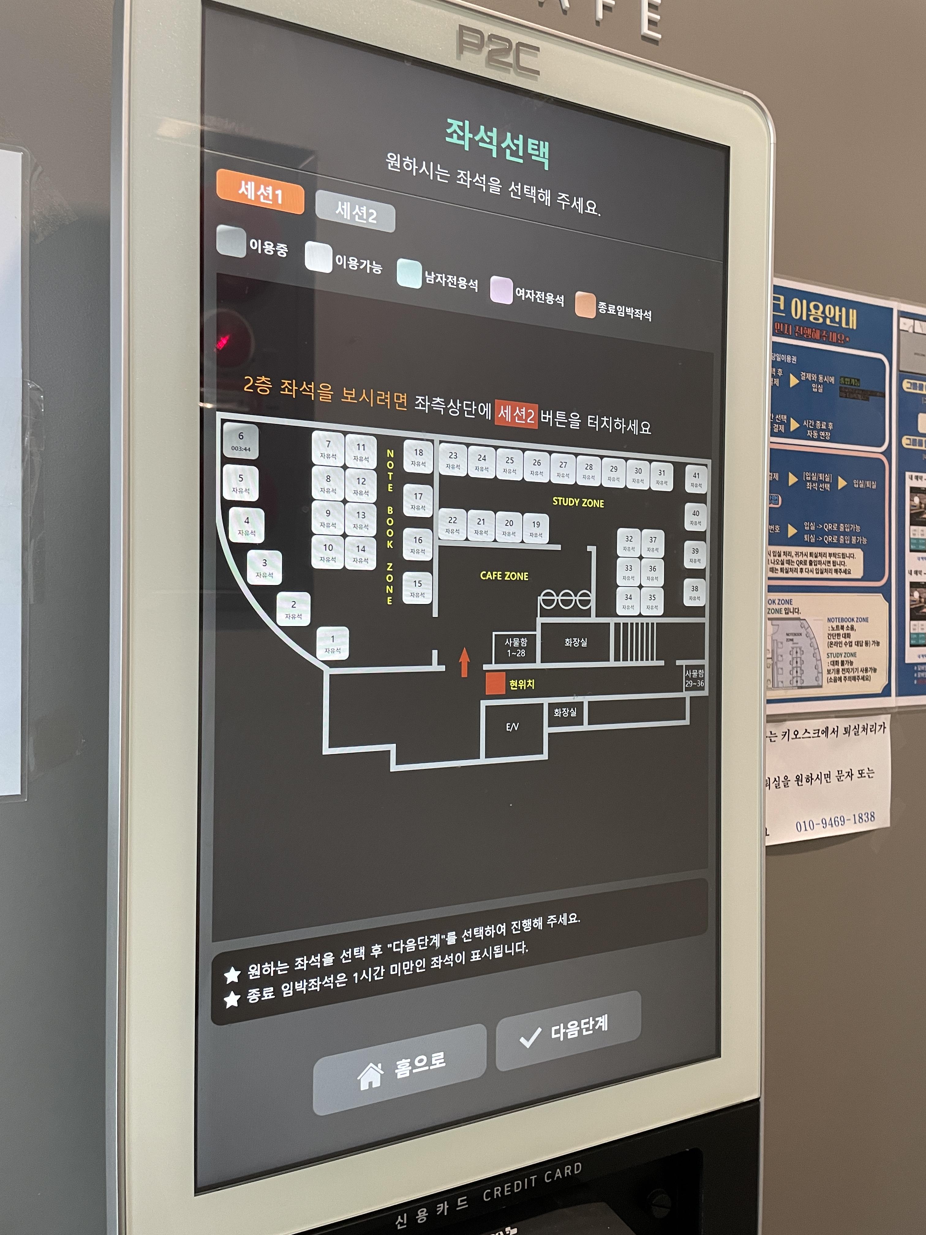 거기서 처음 오신 분들은 회원가입 후에 일일권, 정기권 등 선택하고 계산 후 입장하실 수 있어요.