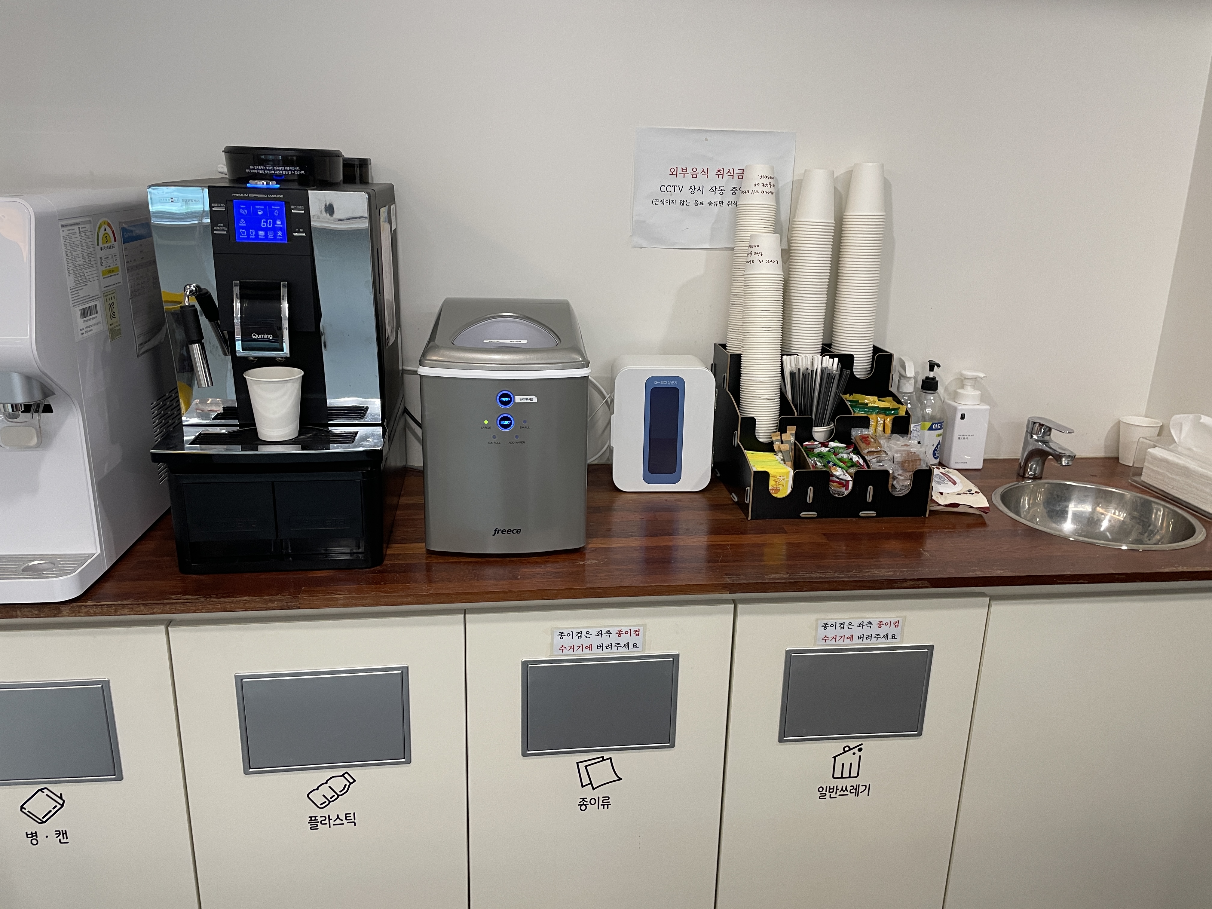 커피머신에서 커피도 마시고 커피쿠키와 약과도 있어서 간단히 먹기 좋았습니다.