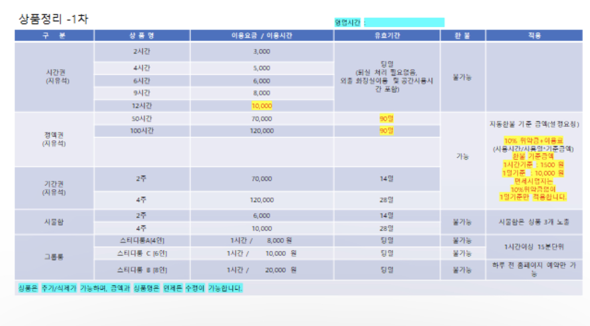 아쉬웠던 점은 일일제의 시간 단위가 3시간 단위밖에 없었다는 점..?