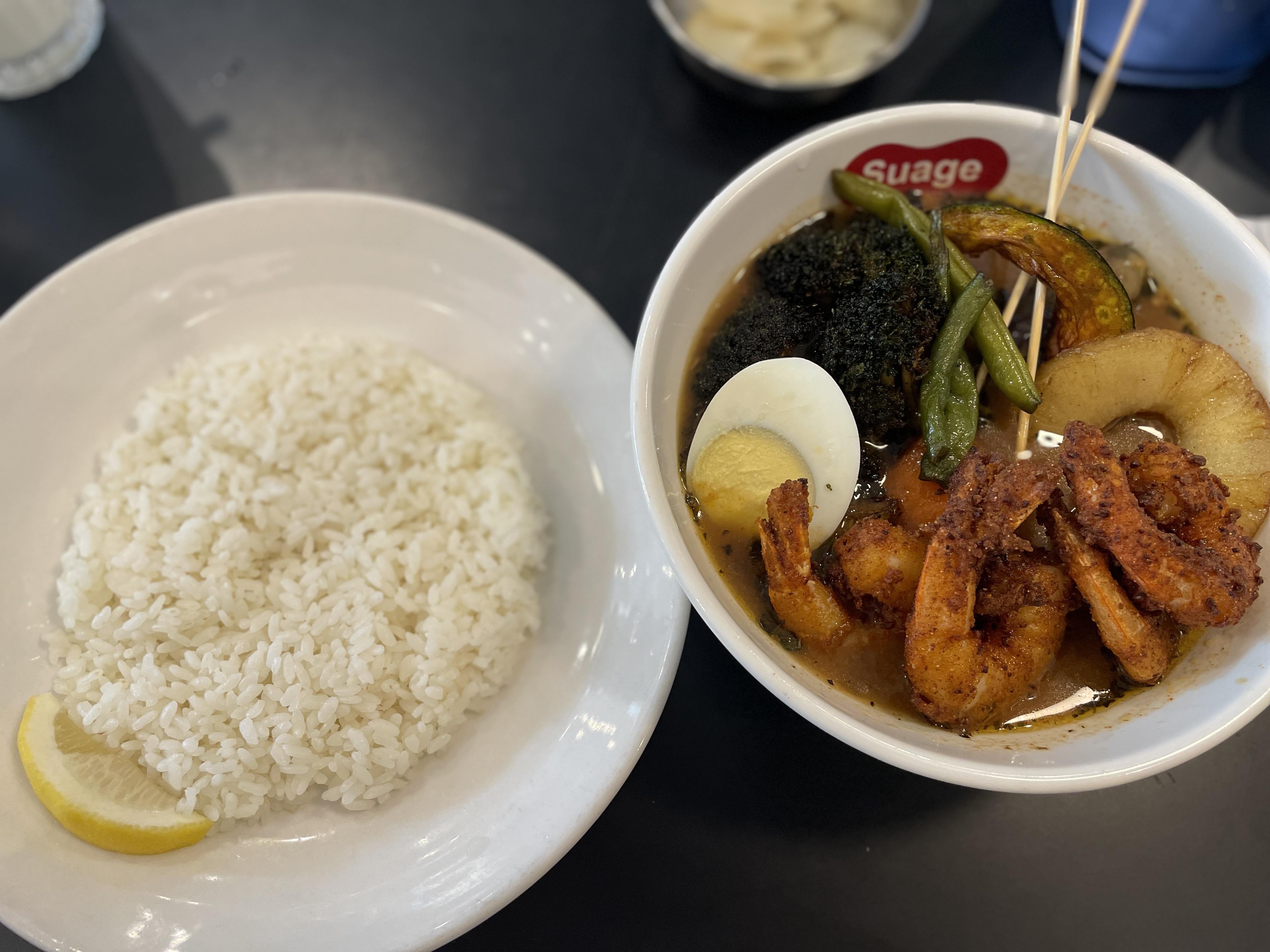 저희는 하와이안 새우카레랑 닭꼬치카레를 먹었습니다.