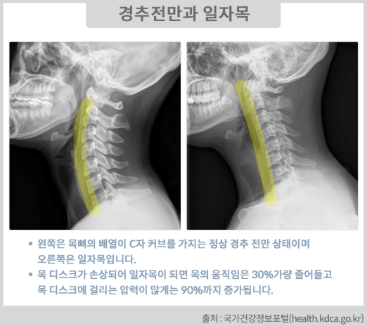 - 바른 자세 유지: 컴퓨터 작업 시 모니터 높이를 눈높이에 맞추고, 장시간 스마트폰 사용을 피합니다.