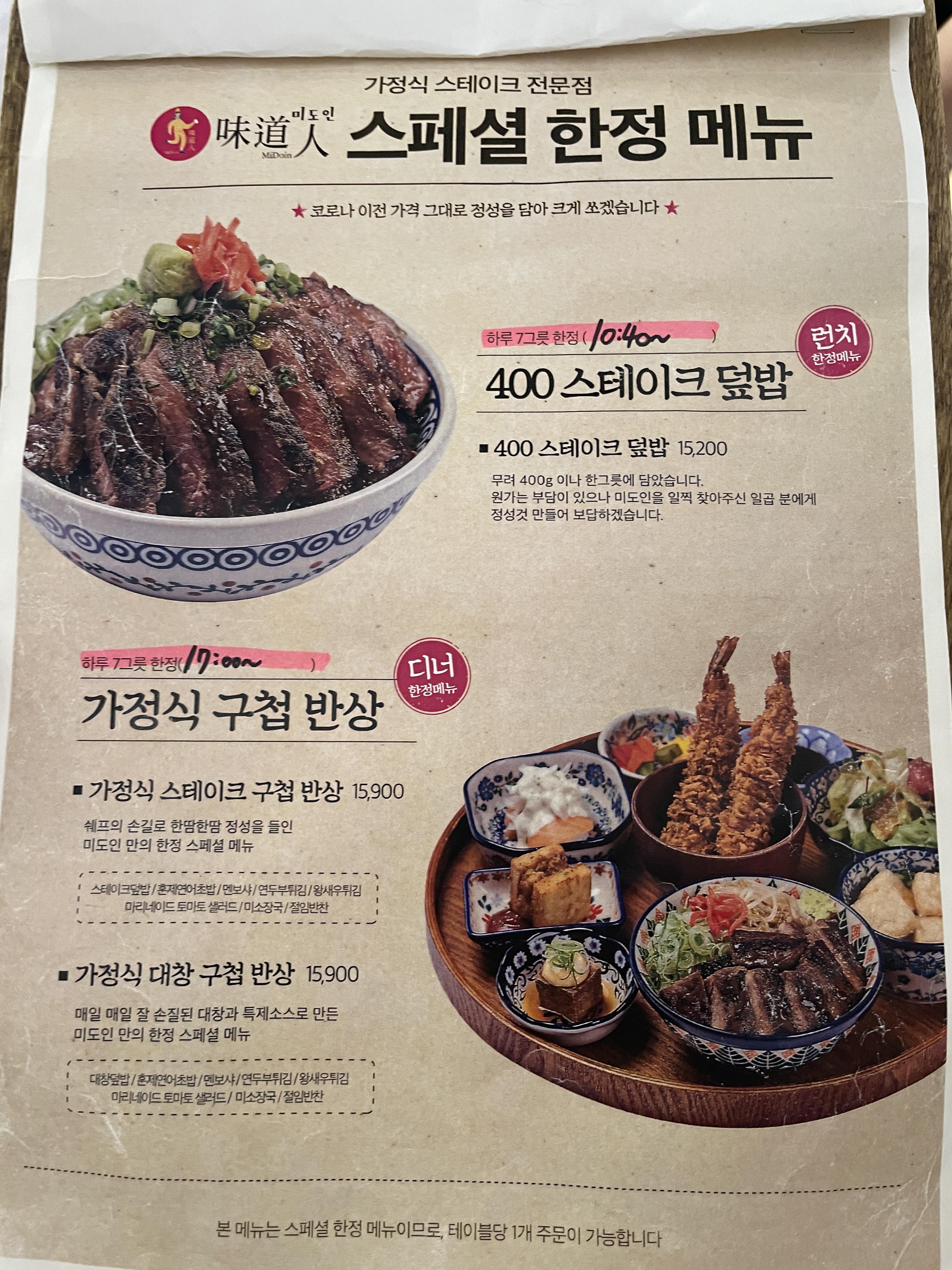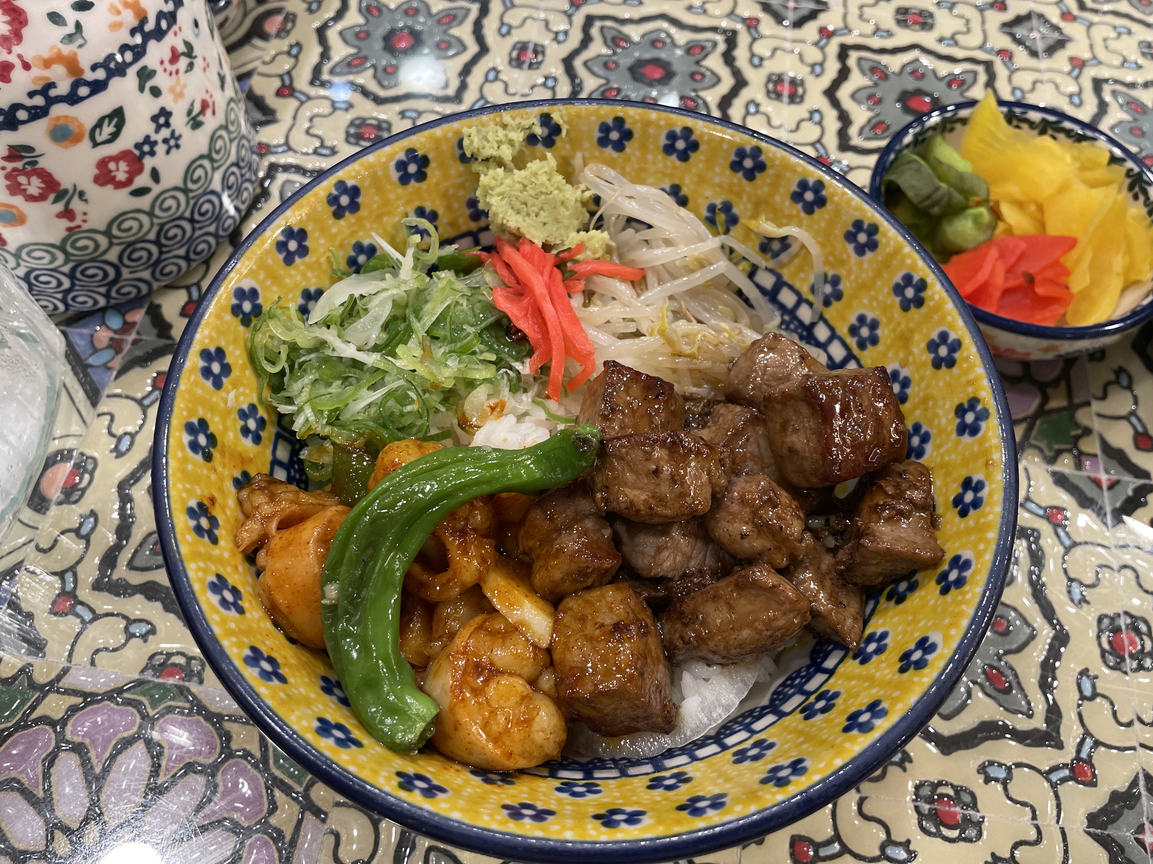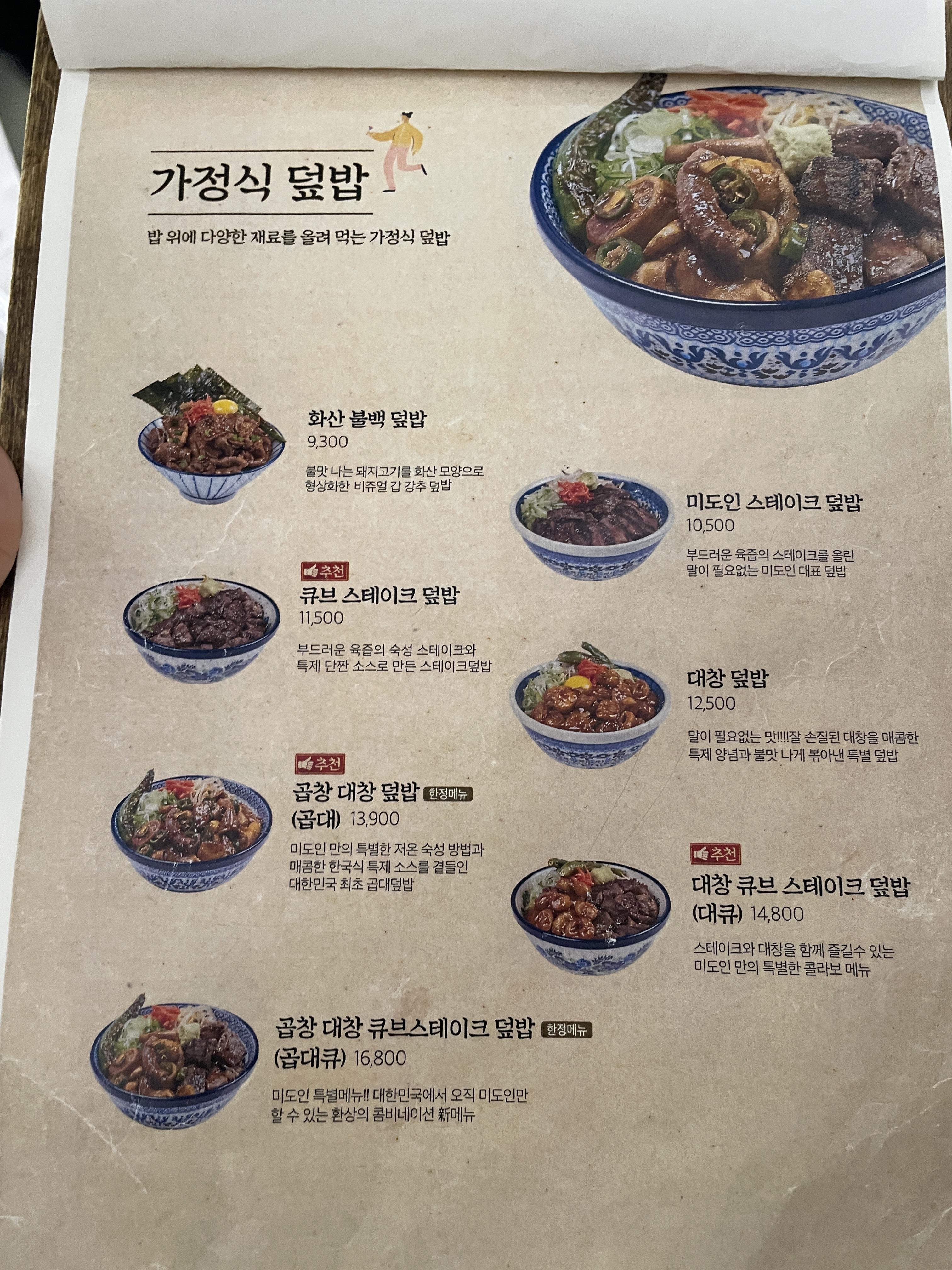 대창큐브 스테이크 덮밥과 탄탄멘을 시켜 먹었어요.