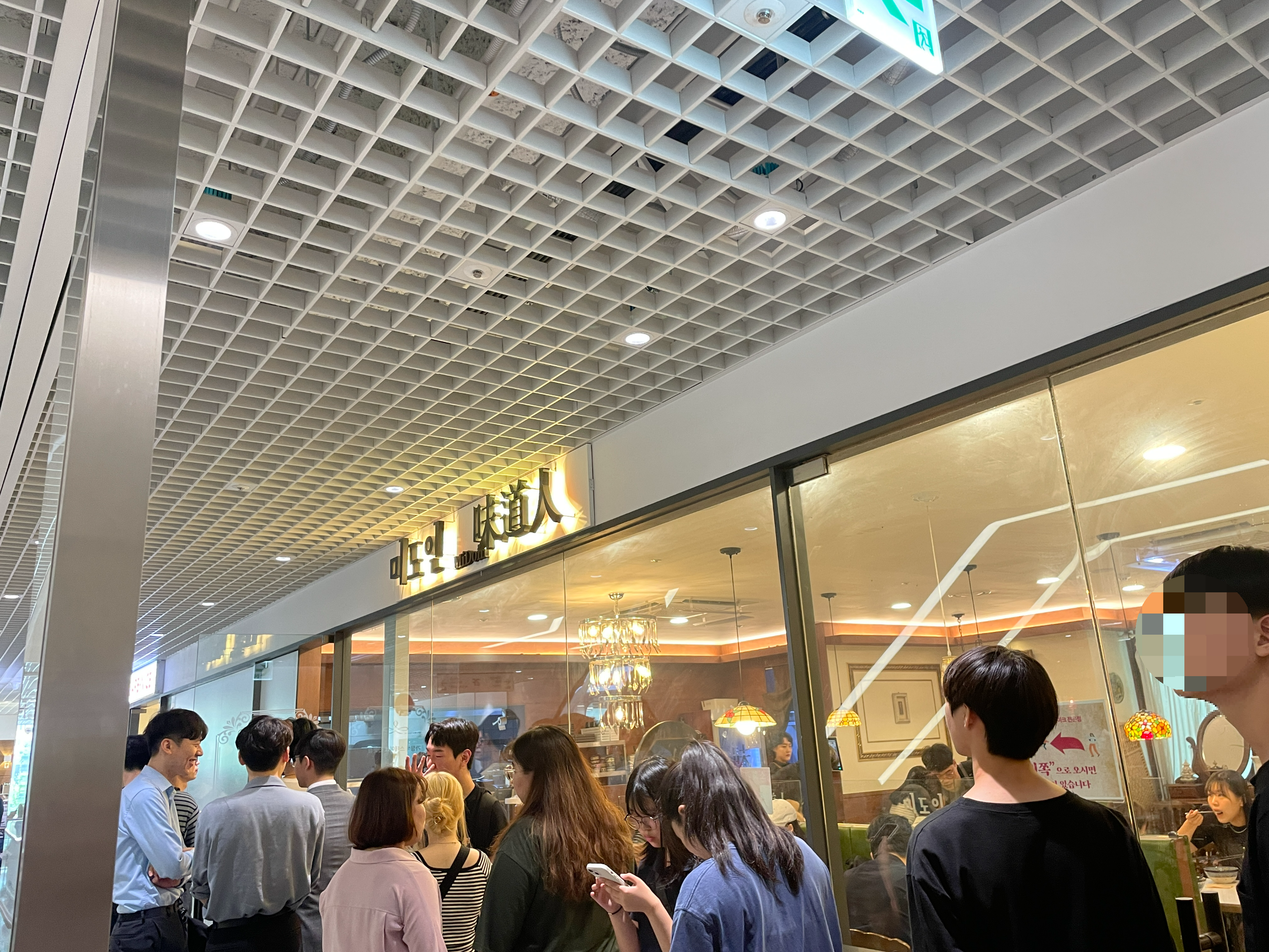 점심시간에 후다닥 가서 11:40에 도착했는데 이미 웨이팅이 길었어요. 앞에 한 열 팀정도? 있었고 12시 5분~10분 정도에 입장할 수 있었어요. 25분정도 기다린 것 같네요.