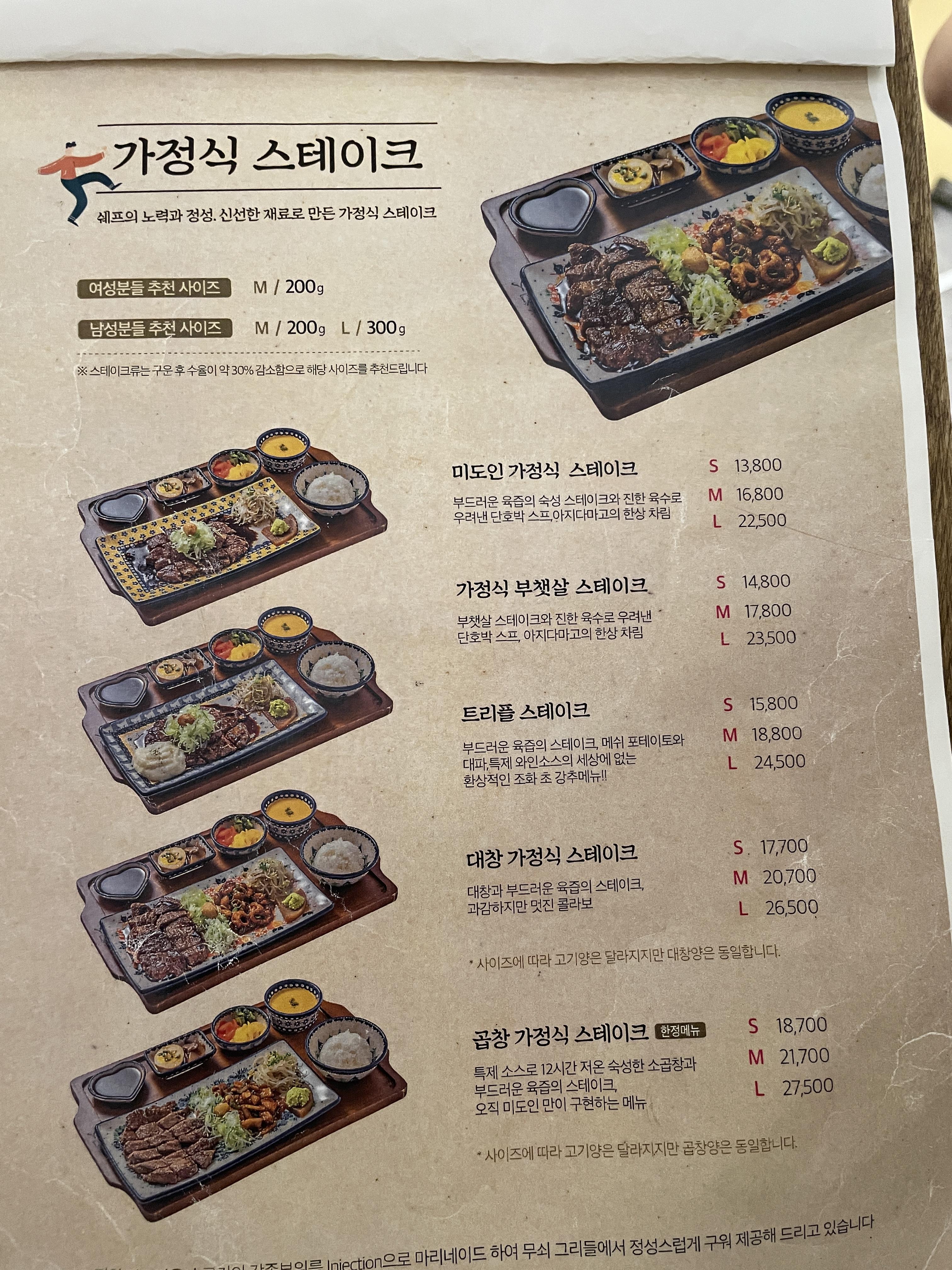 대창도 넘 느끼하지 않고 맛있었고 스테이크도 부드러웠어요.